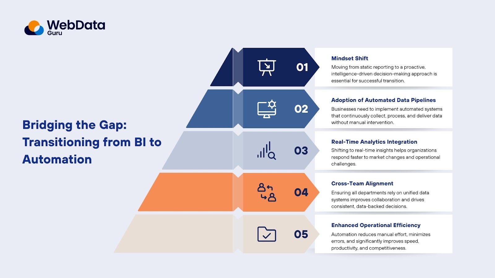The transition requires a shift in mindset as much as technology. Businesses need to move from a reporting-focused approach to an intelligence-driven strategy. This involves integrating automated data pipelines, adopting real-time analytics, and aligning teams around data-driven decision-making.